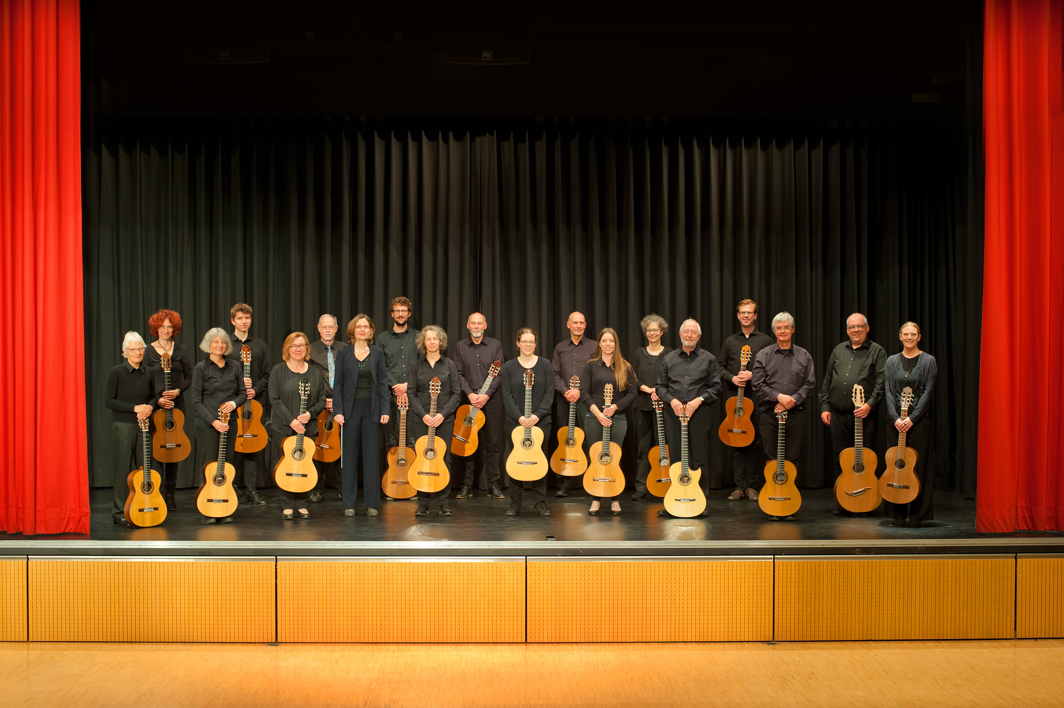 What began in 2001 with a handful of interested guitarists from Nürtingen has developed into a substantial orchestra over more than 20 years. Mandy Bahle is the artistic director and shapes the quality and direction of the orchestra. Ambitious guitarists from the Nürtingen region meet regularly for rehearsals, dedicating their free time with enthusiasm to the cultivation and discovery of this music. The repertoire includes classical works for guitar orchestra as well as modern pieces and folklore from around the world. The use of octave and terz guitars for higher pitches and bass guitars, as well as occasionally a double bass for lower pitches, expands the sound spectrum. Works with soloists prove to be especially appealing to audiences.
